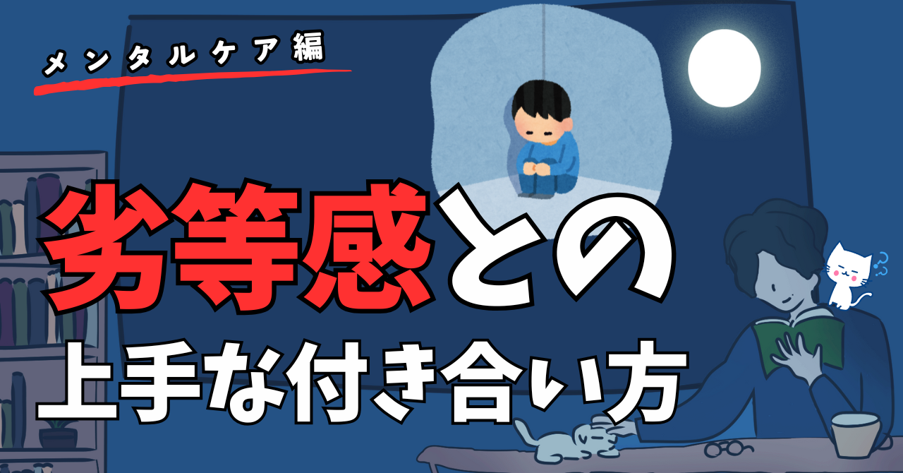劣等感は、他人と比べて自分は劣っていると感じたり、理想の自分と比べると今の自分は劣っている、と感じることだね。